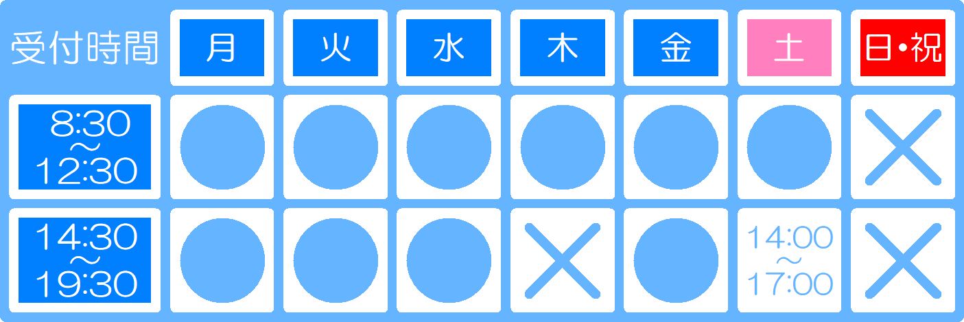 受付時間 午前 8:30~12:30 午後 14:30~19:30